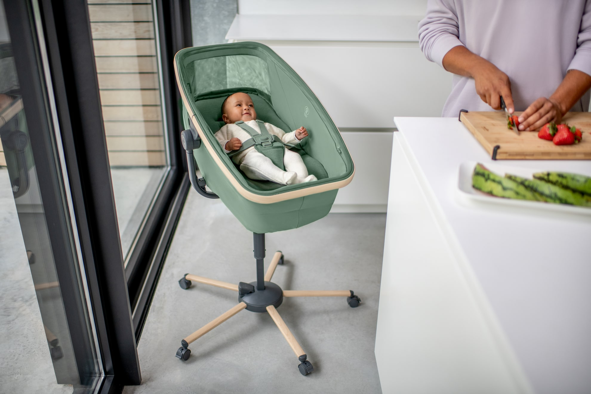 Myśl o pozostawieniu małego bawiącego się dziecka w innym pokoju bez nadzoru wzbudza w rodzicu zrozumiały niepokój. Dlatego warto zaopatrzyć się w kojec lub łóżeczko podróżne i nie martwić się o bezpieczeństwo maleństwa. Wielofunkcyjność krzesełka Maxi-Cosi Alba sprawia, że rodzice i dzieci mogą robić więcej rzeczy razem każdego dnia. Ty pracujesz, maluch słodko śpi. Jesz przekąskę, a maluch się bawi. Dzięki 5 obrotowym kółkom można bez wysiłku i bezpiecznie przesuwać krzesełko Alba z jednego pomieszczenia do drugiego. Już od dnia narodzin możesz ułożyć maleństwo w gondoli na drzemkę lub zapiąć w rozkładanym foteliku (do około 6. miesiąca życia, 9 kg).