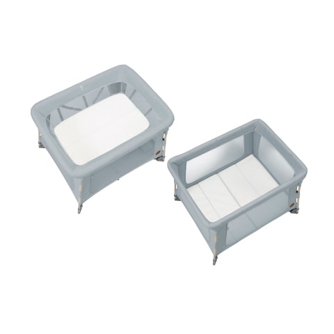 Łóżeczko podróżne 3 w 1 ma wyjątkowy dwuetapowy materac, który rozpina się, aby idealnie dopasować się do górnego poziomu łóżeczka, tworząc mniejszy i przytulniejszy materac dla noworodków. Kiedy dziecko podrośnie, materac można znowu spiąć, aby stworzyć superwygodną większą przestrzeń do zabawy lub zasłużonej drzemki.