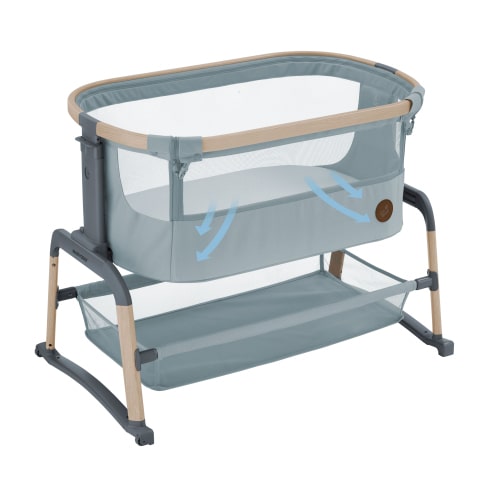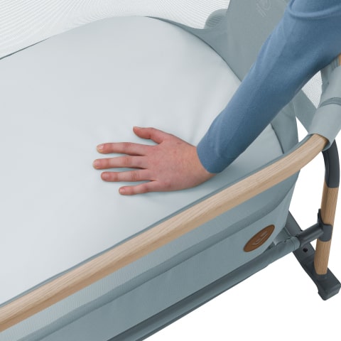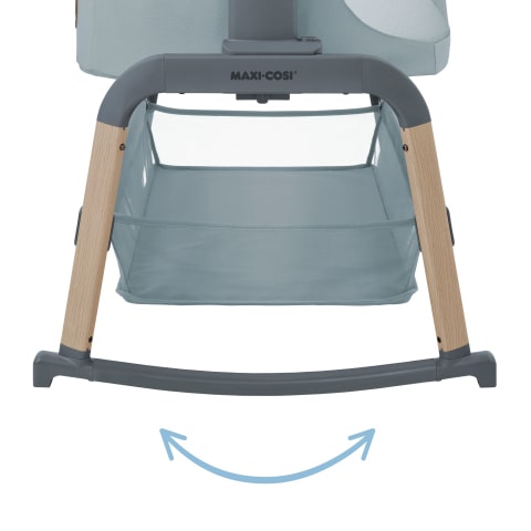 Łóżeczko dostawne Maxi-Cosi Iora Air jest wyposażone w funkcję kołysania, która pozwala łatwo wyciszyć niespokojne dziecko. Wystarczy po prostu przekręcić wygiętą w łuk podpórkę nogi i ukołysać dziecko do snu.