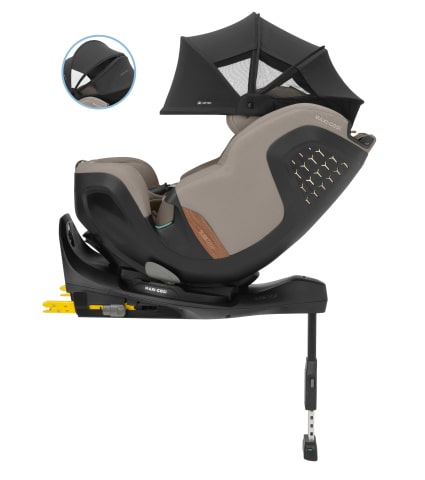 Mocowanie daszka przeciwsłonecznego do zagłówka fotelika samochodowego jest szybkie i proste.