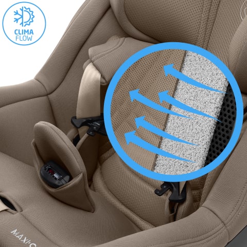- Twój maluszek będzie podróżować komfortowo przez cały rok dzięki umieszczonym w foteliku samochodowym panelom wentylacyjnym ClimaFlow, oddychającej piance i tkaninom o strukturze siatki, które zwiększają cyrkulację powietrza.