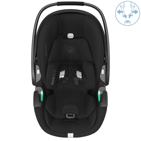 Pebble 360 Pro² jest wyposażony w uprząż Easy-in, która pozostaje otwarta i nie przeszkadza, dzięki czemu można bez wysiłku włożyć i wyjąć dziecko z samochodu.