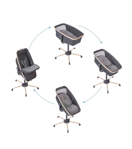 Stylowa gondola, fotelik i wysokie krzesełko w jednym; spełnia wszystkie potrzeby dziecka i pozwala mu być zawsze blisko Ciebie.