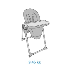 Oferuje miękkie podparcie dla noworodków (0–6 miesięcy), a następnie zamienia się w wygodne, wysokie krzesełko na każdy posiłek aż do 3. roku życia.