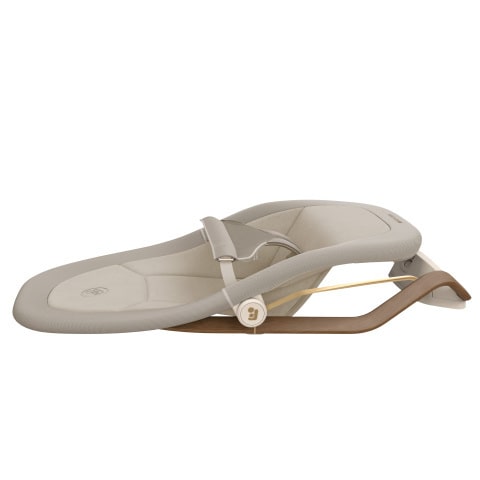 Leżaczek wyróżnia się elegancką, nowoczesną sylwetką. Jego tapicerka jest szyta w 100% z materiałów Eco Care pochodzących z recyklingu. Można ją łatwo zdjąć i wyprać w pralce.