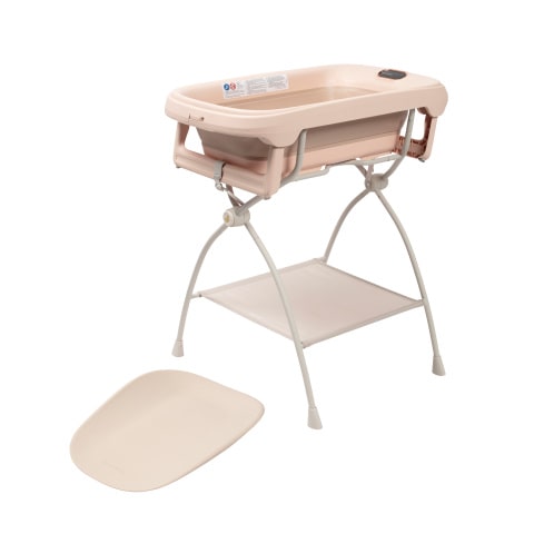Stojak ustawia wanienkę na wygodnej wysokości, dzięki czemu możesz kąpać dziecko bez schylania się i obciążania pleców.