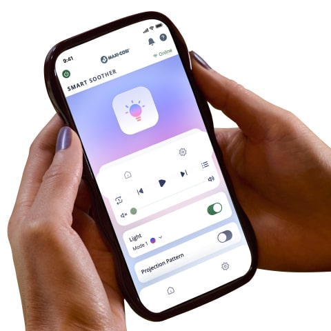 Możesz dostosować otoczenie do snu swojego dziecka niezależnie od tego, gdzie Ty się znajdujesz – reguluj oświetlenie, dźwięki i inne parametry za pomocą aplikacji oraz wbudowanych przycisków, lub Google Home.