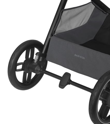 - Rączka z tyłu ułatwi wchodzenie z wózkiem pod górę i pokonywanie przeszkód, a funkcja blokowania kół w pozycji na wprost pomaga pchać wózek na nierównych żwirowych nawierzchniach.